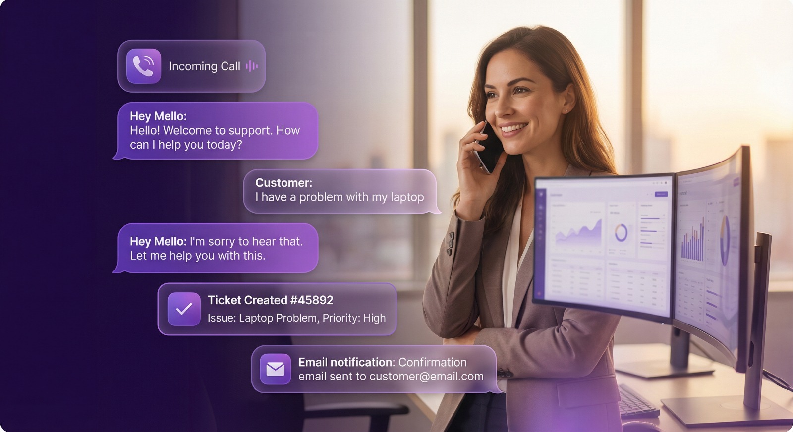 Automate customer inquiries, troubleshooting, and support tickets with intelligent voice agents that provide instant, accurate assistance.